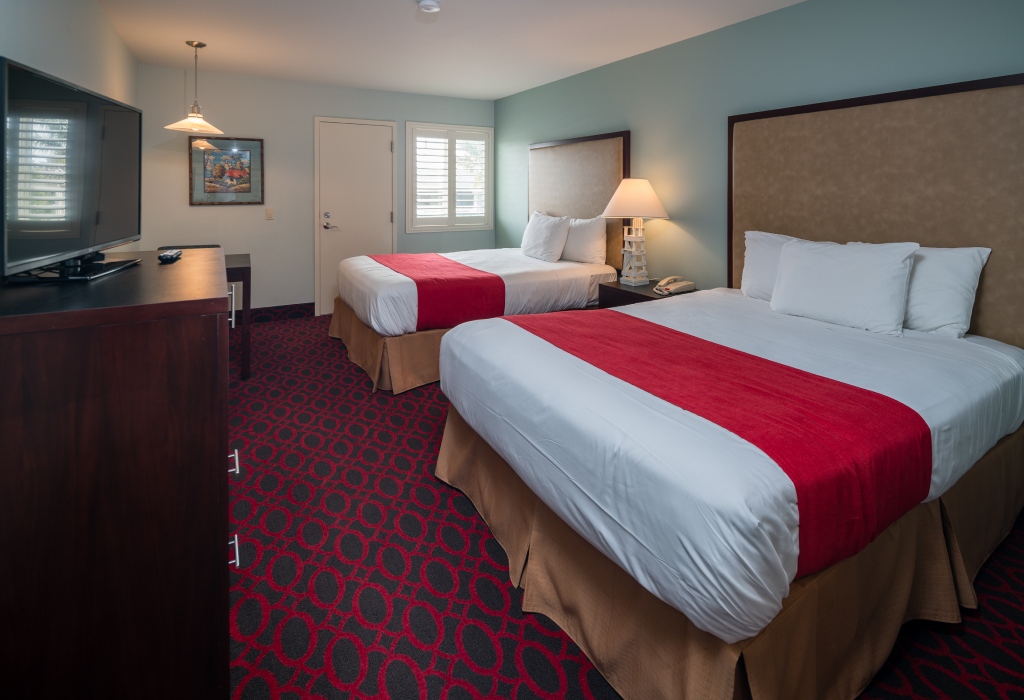 The Morro Shores Inn & Suites offers guests with an astounding selection of guest rooms and suites featuring several amenities that are sure to meet your needs. Here at our Morro Bay hotel, you will enjoy a collection of comfortable, designer decorated deluxe rooms or luxury suites, all with free Wi-Fi and 50” LED HDTVs, pillow top mattresses, and balconies. Deluxe rooms feature one king standard bed, two double beds, or one queen bed. Luxury suites offer a living space/bedroom with a queen size pull out sofa bed, a sofa chair with an ottoman connecting to a bedroom with one king standard bed. Suites also feature a fireplace, 42” whirlpool tub and a patio with a partial park view. All of our guestrooms are ADA Defined service-animal friendly. All guest rooms are equipped with irons and ironing boards, minibars with refrigerators and microwaves, coffee makers, and hair dryers. Many rooms feature small balconies with views of Morro Bay.