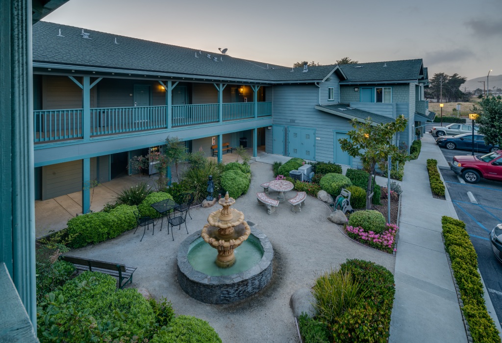 Welcome to Morro Shores Inn & Suites in tranquil Morro Bay, California. Located off Highway 1, we are a block away from the Pacific Ocean and just a 5-minute drive to downtown. Downtown Morro Bay has a variety of shops and restaurants including the Galley Seafood Grill & Bar and House of Ju Ju. Morro Bay Golf Course is just 3 miles away. Recently renovated, The Morro Shores Inn has a brand new craftsman style exterior with a warm, inviting coastal decor interior and modern, stylish amenities and furnishings. Enjoy the beautiful courtyard with a four tier water fountain and sitting area allowing guests to mingle or just enjoy the outdoors.